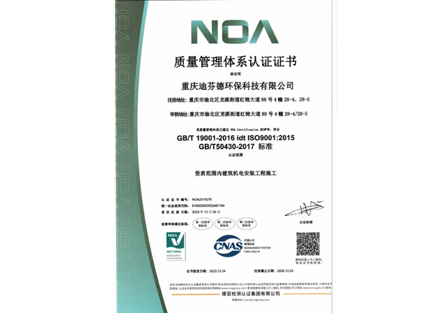 重慶迪芬德環(huán)保科技有限公司,成立于2012年9月。公司擁有建筑裝修裝飾工程貳級、建筑機電安裝工程貳級、消防設施工程貳級資質,并通過ISO 9001質量管理體系、ISO 14001環(huán)境管理體系、ISO 45001職業(yè)健康安全管理體系認證,是專業(yè)從事空氣凈化類的高科技企業(yè),公司秉承“科技創(chuàng)造價值、超越客戶期望”的理念。